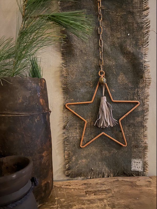 Licht grijs/naturel kalkdoek, roest ster met grijs hangertje