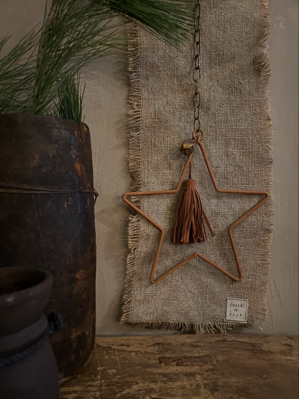 Licht grijs / naturel kalkdoek, roest ster met een licht bruin hangertje